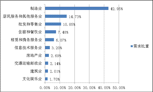 图1 部分行业需求占比情况(%)