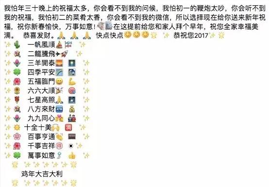 看着这种群发祝福无奈苦笑,他们是怎么做到一两年来,持续不长点心的?往上翻,是元旦、中秋、五一和去年春节的复制粘贴内容。我甚至怀疑,他们知不知道我是谁?
