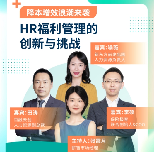 近日,数字化员工商保服务商保险极客发布《2022企业健康福利洞察报告》,并举办线上发布会,邀请新东方前途出国人力资源负责人喻薇、百融云创人力资源副总裁田涛以及保险极客联合创始人&COO李硕出席,分享企业健康福利的创新与解决办法,探讨对HR福利管理未来的见解和策略。