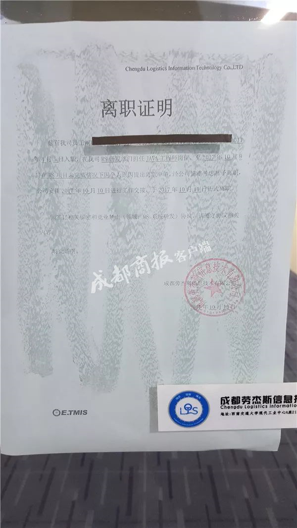 于是戴翔跑去跟原公司撕逼,将自己的离职证明贴在了原公司的玻璃上,名字、职务全部公之于众。可以说是出离愤怒了。