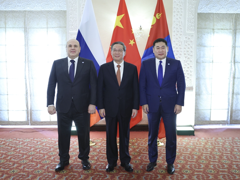 李强指出,中俄蒙三国地理相邻、命运相依,三方开展合作具有独特的地缘优势、扎实的民意基础。中方愿同俄蒙两方以三国元首共识为根本遵循,着力落实三方合作中期路线图,加强发展战略对接,深化政策沟通协调,推动三方合作更加深入、更可持续、更有成效,打造邻国友好交往、互利共赢的典范。中方愿同俄蒙两方聚焦中蒙俄经济走廊下重点合作,深化在上海合作组织等平台多边协作,分享发展机遇,共享发展成果,维护共同利益,携手续写中俄蒙三方合作新篇章。