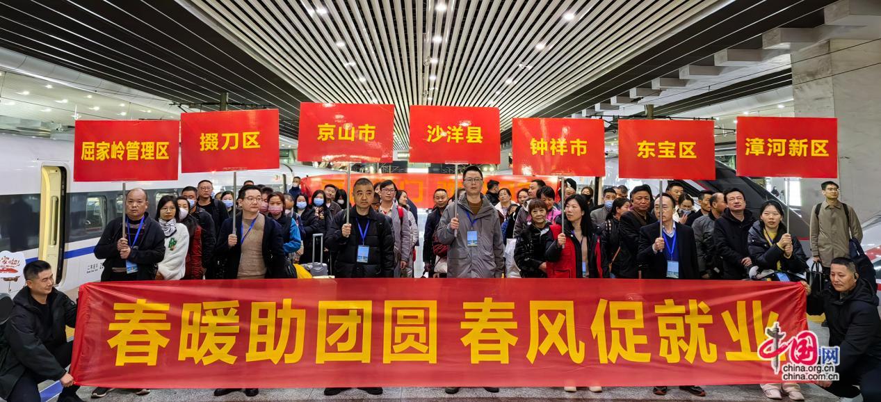 中国网讯(记者 杨佳) 12日,农历腊月十三,返乡专列G1136次列车从广州南站出发,开往荆门西站。约有700名湖北荆门籍务工人员乘坐返乡专列回家。专列到达荆门后将有转运大巴无缝衔接送务工人员回京山、钟祥等县城。